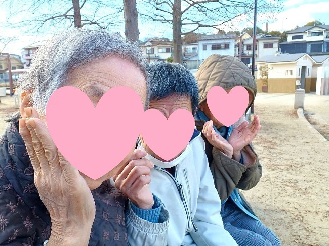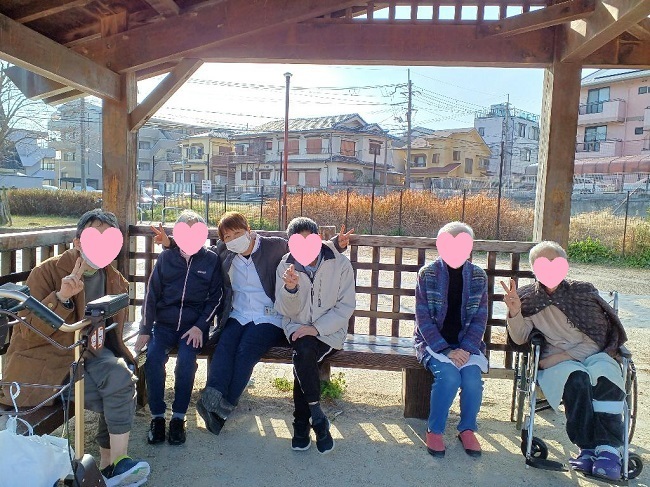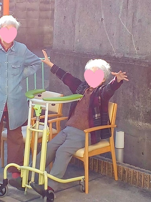 青空の下、施設の外や、少し足をのばして近所の公園までお散歩に出かけました。気持ちよさそうですね。