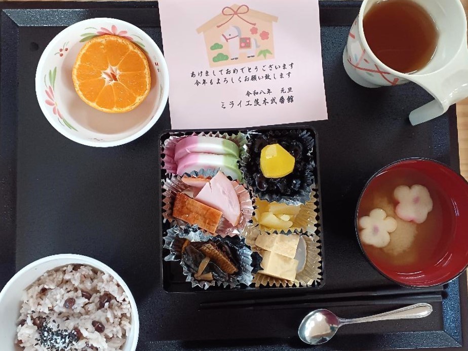 お正月三が日のご様子です。元旦は昼食の「おせち料理」に舌鼓をうち、書き初めをしました。