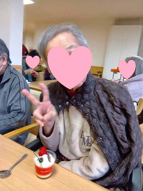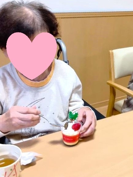 12月26日 クリスマスデザートでお茶会を開催しました。大きなイチゴが丸々一つのった、プリンカップをご提供。