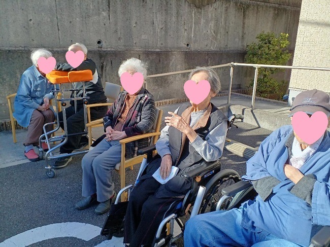 日向ぼっこ大好き『チーム ミライエ茨木弐番館』の面々は、風もなくお日様の顔が全開のタイミングは逃しません。