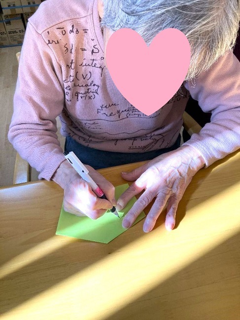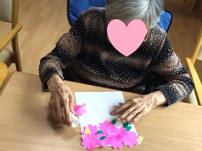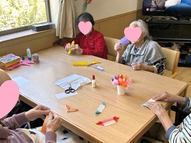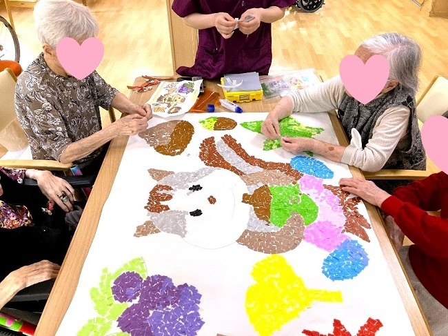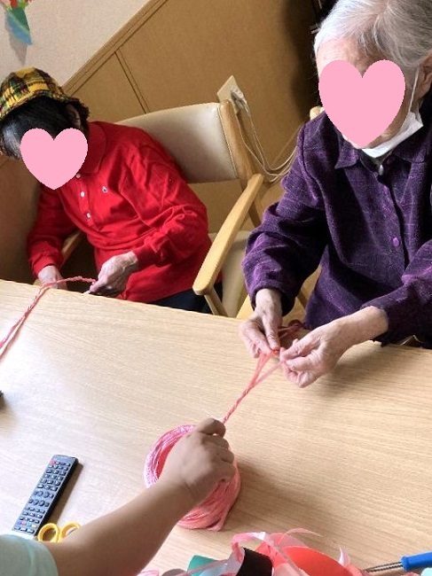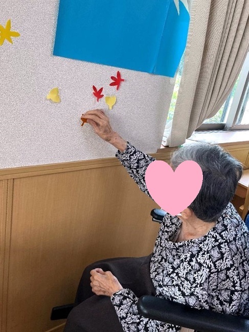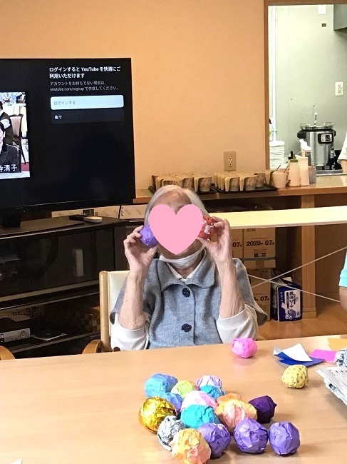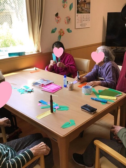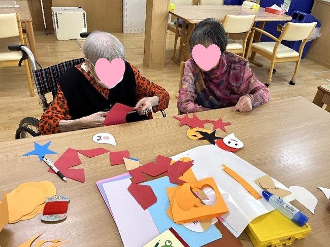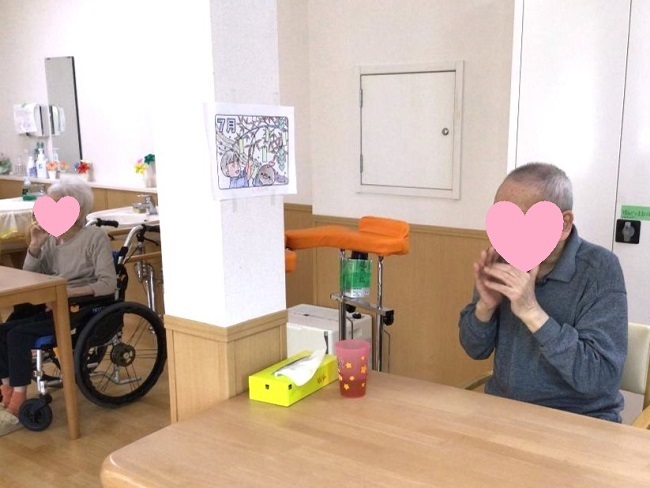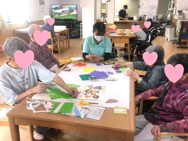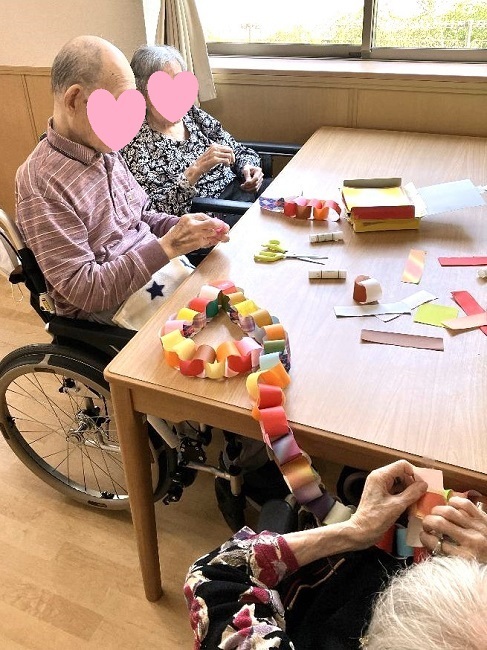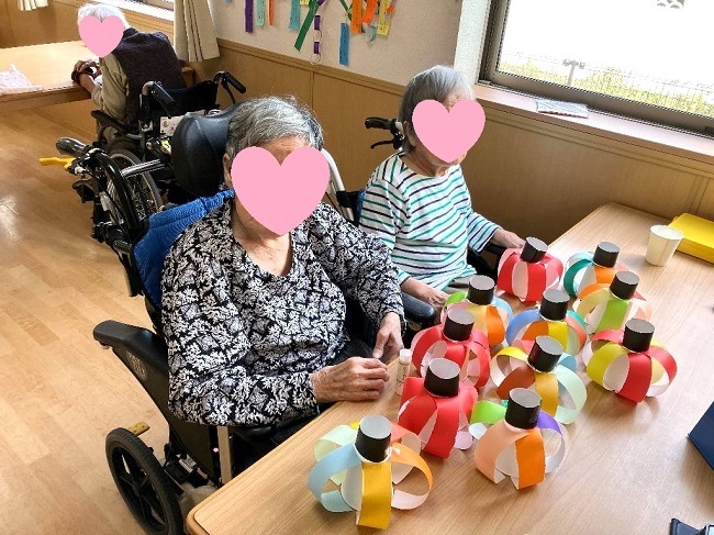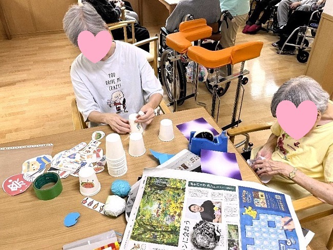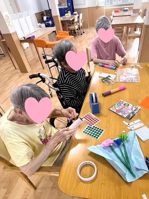 季節の貼り絵や塗り絵はもちろんのこと、特に時間をかけてワクワクしながら取り組まれていたのは夏祭り準備のようです。