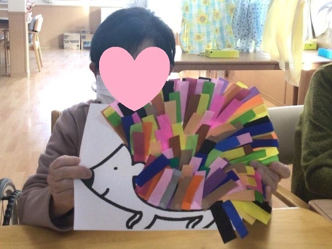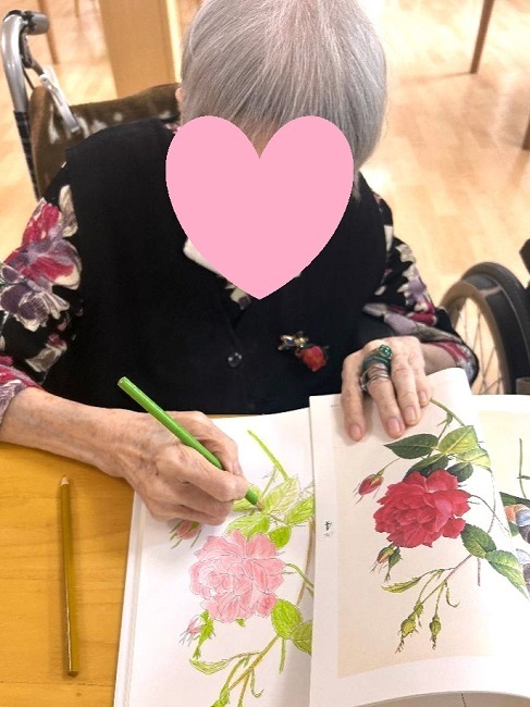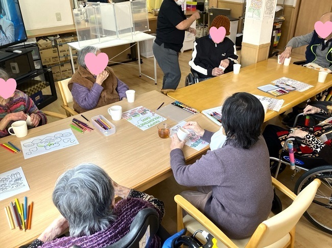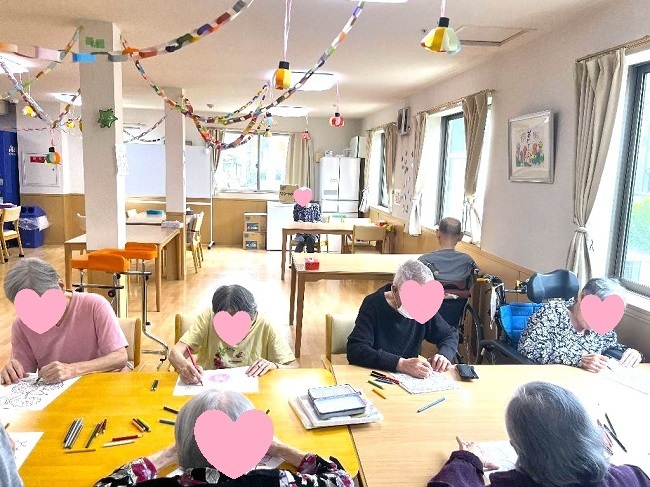 「みんなと一緒に居たいけど今日は気分がのらない」という時は、塗り絵や貼り絵の続きや音楽鑑賞など、したいことをしてお過ごしです。