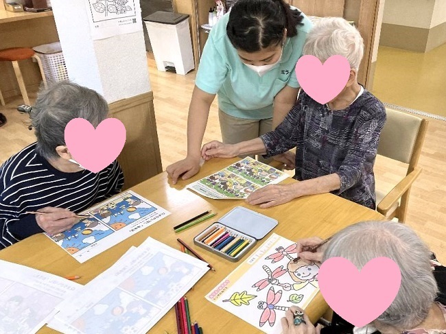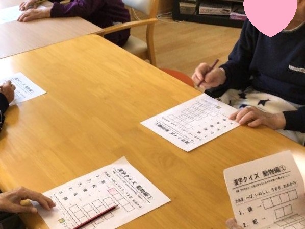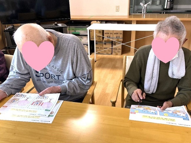 間違い探しや漢字クイズも人気で、皆さま真剣なお顔で取り組まれています。
