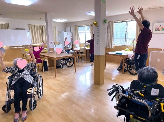 昼食前には、お食事の準備を待つ間、ラジオ体操や合唱、お口の体操をしています。