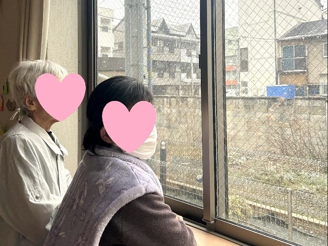 寒さが堪える季節です。暖かい室内から雪見をしたり、お雛様や桜の貼り絵制作をして過ごされています。