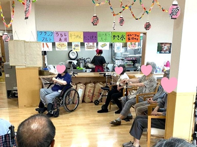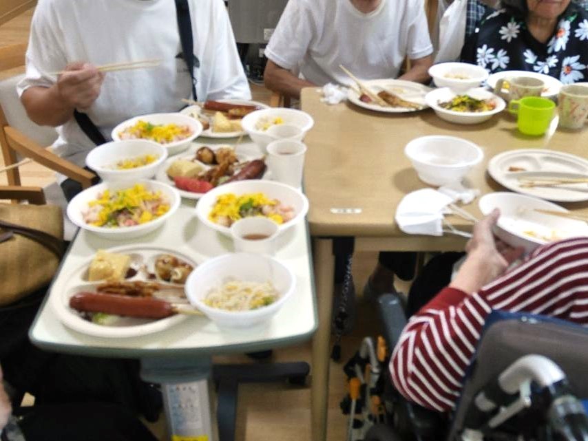 お休み返上で参加のスタッフも一丸となって、利用者様と一緒に作り上げた夏祭りとなりました。お祭りの後、家族様との運営懇談会では「食事もおいしく、楽しかったです」とのお言葉いただきました。「次は敬老の日だね」との言葉も聞こえてきました。