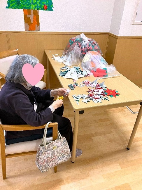 ツリー用のポインセチアの繊細な切り抜き作業では、なんと、おひとりで60枚も制作されたそうです!