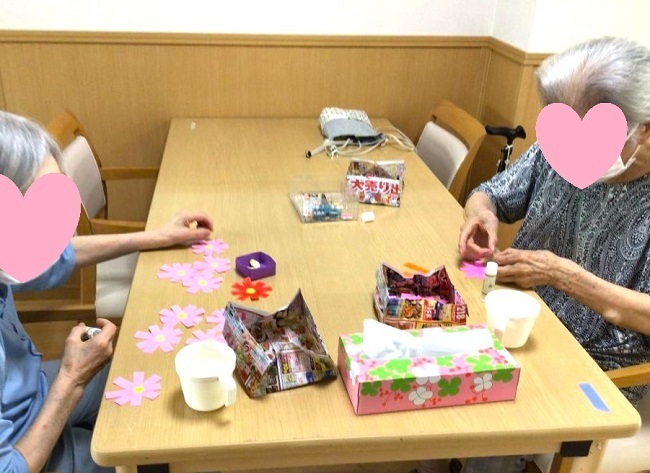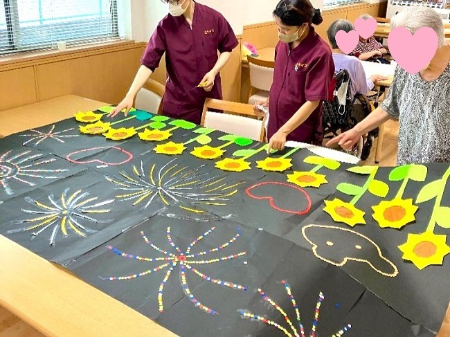 6月から9月にかけて、七夕~花火・ひまわり~朝顔・夏祭りに向けてヨーヨー作り~コスモス~ぶどう~紅葉からのクリスマス準備まで、日々の制作風景をご紹介します。