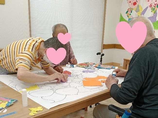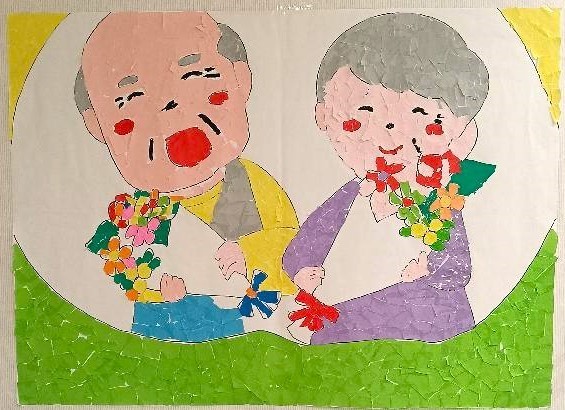 7月下旬から敬老の日に向けての貼り絵の制作を開始しました。