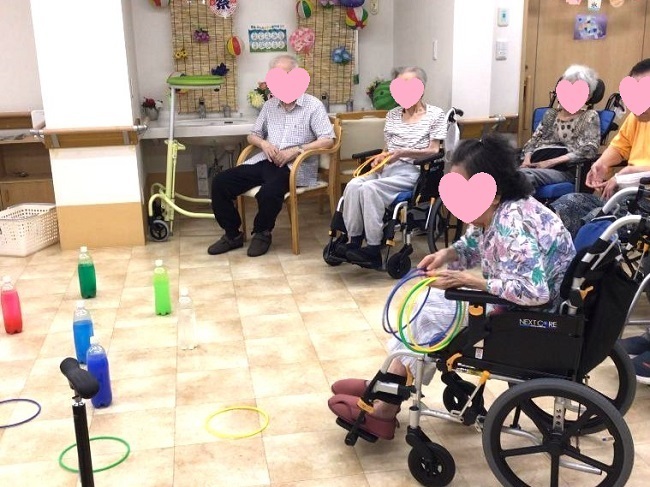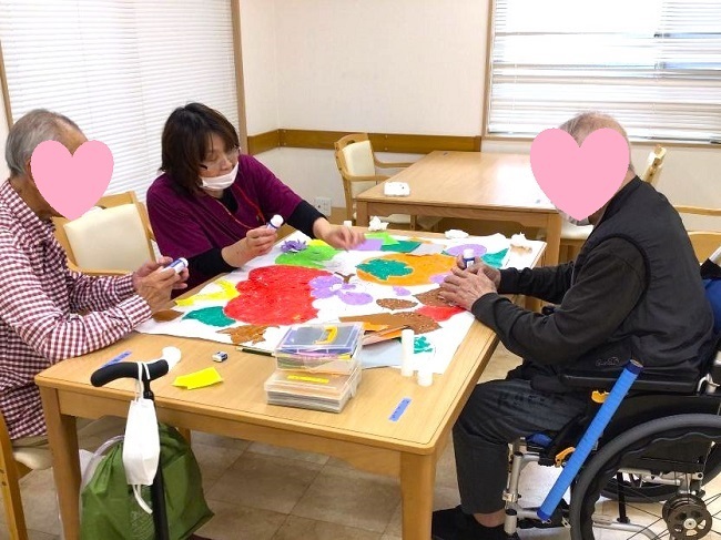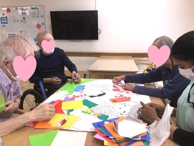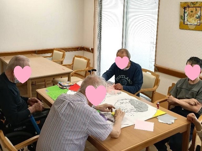 施設では、貼り絵などの制作レクの他に、日々様々なレクリエーション活動を行っています。日常の様子をご紹介。