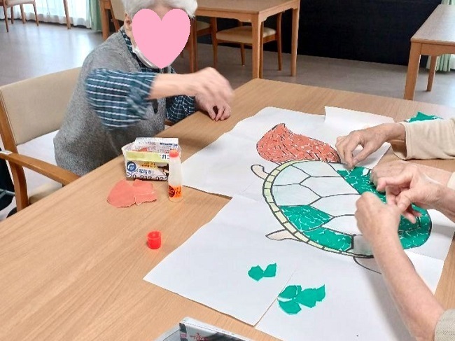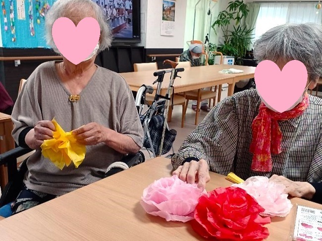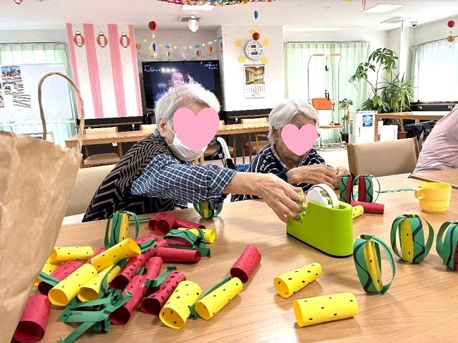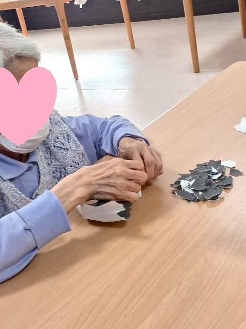 早くから入居者様と一緒に飾りを作ったり、ゲームの準備などをしました。
