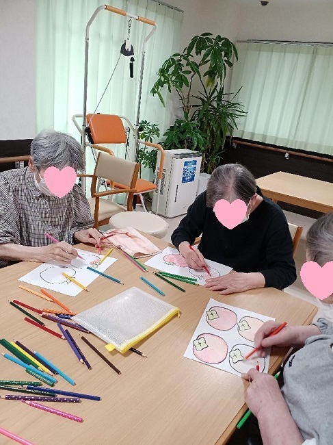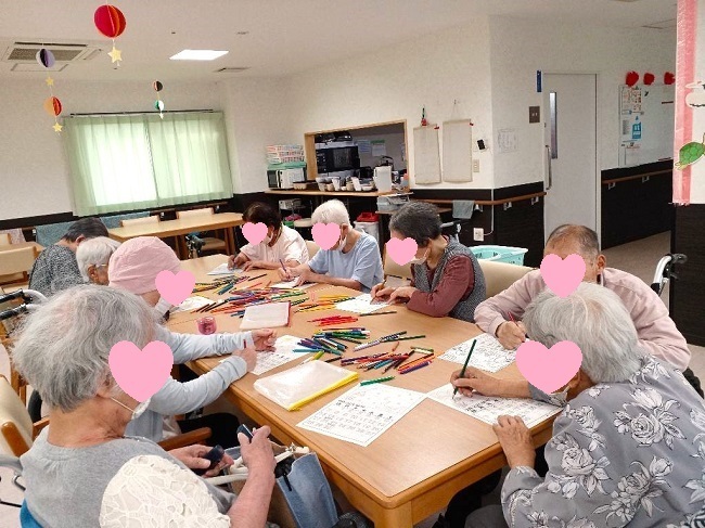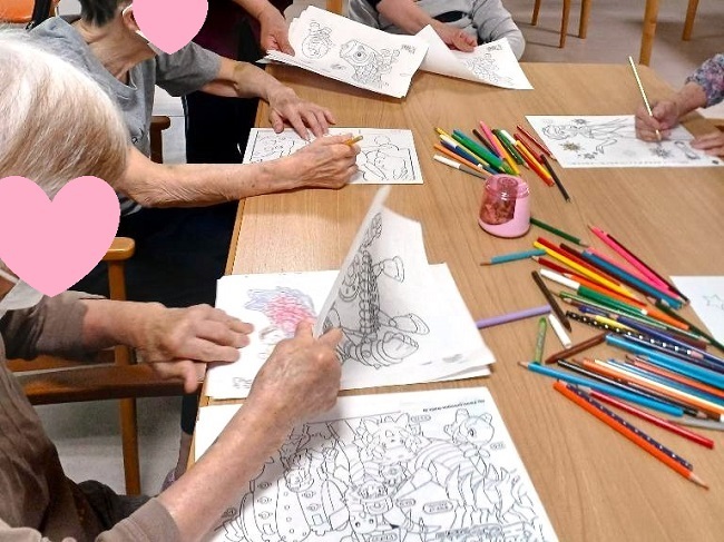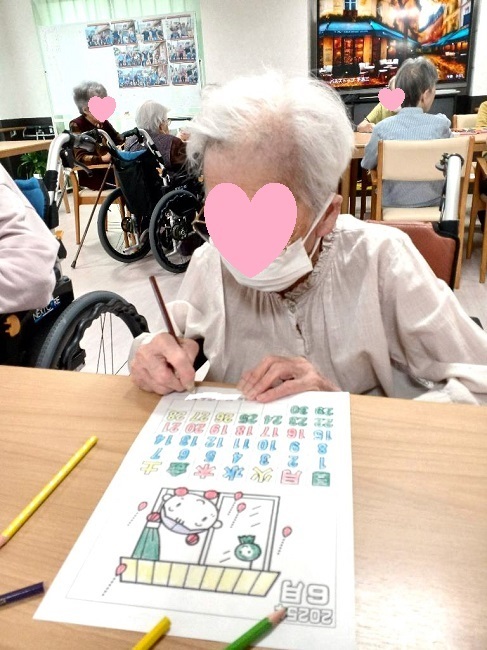 6月カレンダーの塗り絵では、「お好きな図柄を選んでいただき、思い思いに集中してぬりぬり。お部屋に飾ろう!と皆さん楽しんでいただきました。」とのスタッフ談でしたが。。。