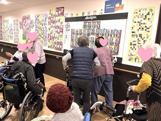 作品は施設内で掲示し、前を通る人達の目を楽しませています。