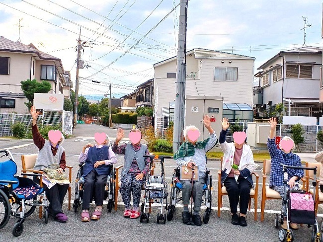 「外に出るのもいいね~!」と自然と笑顔がこぼれ、会話も弾みます。上空には飛行機も飛んでいて「おーい!」と手を振っておられる方もいらっしゃいました。