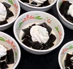 演奏会の後、記念撮影のお写真をお渡しし、デザートタイムではコーヒーゼリーにホイップ添えをご提供。『甘くて、美味しいわ。』と大好評だったようです。