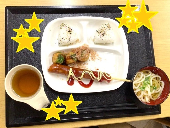 お食事には「フランクフルト、お好み焼き、おにぎり」とお祭り屋台メニューをご用意いたしました。いいにおいがしてきそうですね。皆様、おいしそうに召し上がったそうです。