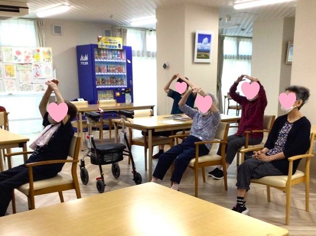 月に何度か、動画を見ながら軽い運動や脳トレ等のレクリエーションを行っています。