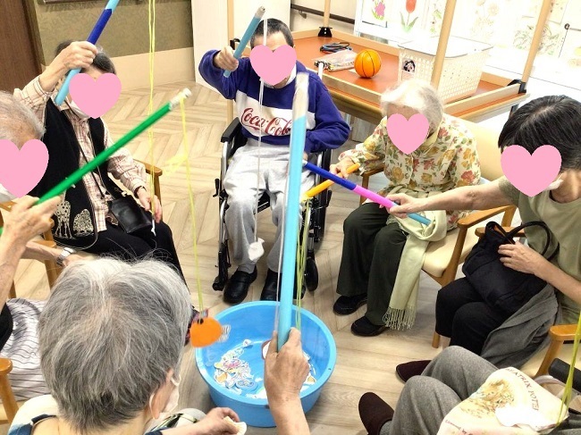 コロナ禍で日頃なかなかレクができない昨今、とても楽しまれたようです。魚釣りや的当てゲームで大盛り上がりな様子がうかがえます。スロットマシーンもご用意させていただきました。皆さま、子どもの頃に帰ったようなお顔です。