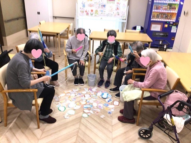 11月11日はお天気が良かったので日向ぼっこ、12~13日は、入居者様たってのご希望で二日に渡って魚釣りゲームとしりとりを実施。