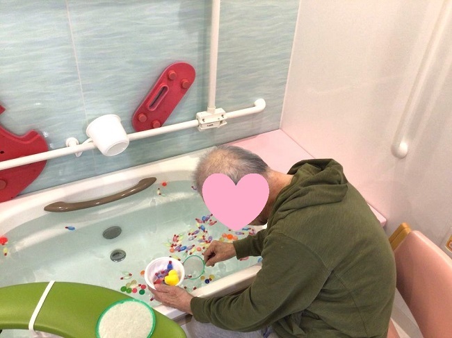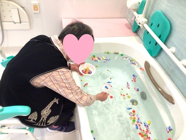お風呂のバスタブを利用した、豪快な金魚すくいや、輪投げ、魚釣り等のゲームに挑戦されました。