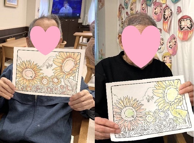 ぬり絵組は『セミの声とギラギラした陽射し』を思わせるひまわりで夏を先取り中。