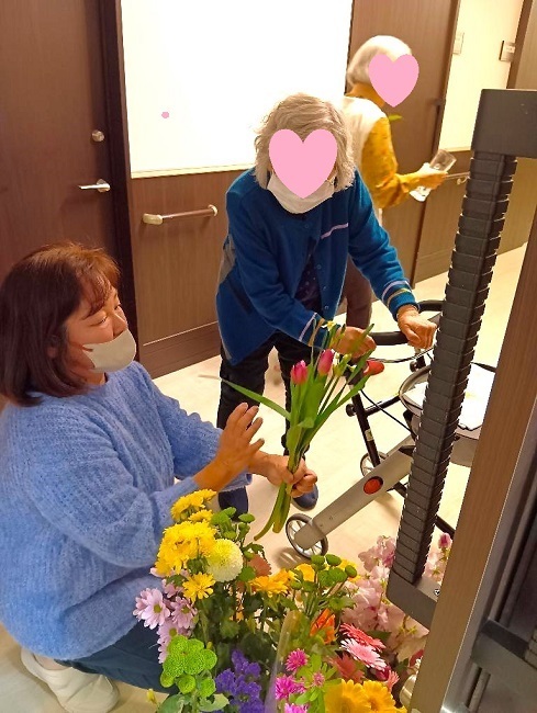 施設玄関に飾り来設者の目を楽しませていました。