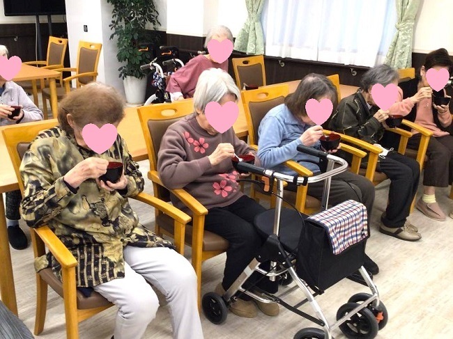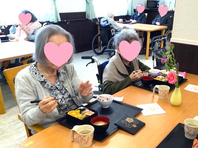 皆様、開所間もない新しい施設で初めて迎えるお正月でした。静かにお節料理に舌鼓を打ち、落ち着いた時間を過ごされたようです。