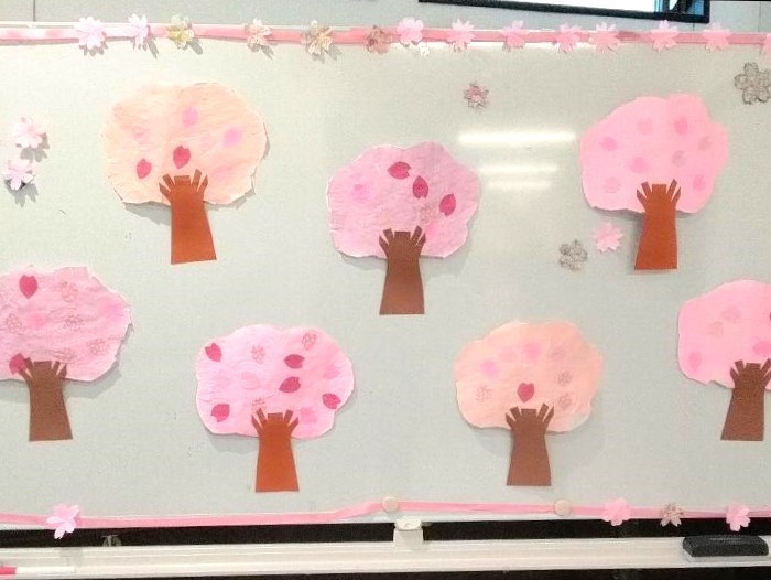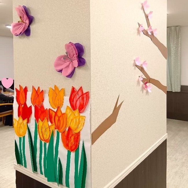 桜やチューリップの制作も完成し、春を迎える準備が着々と整っているようです。
