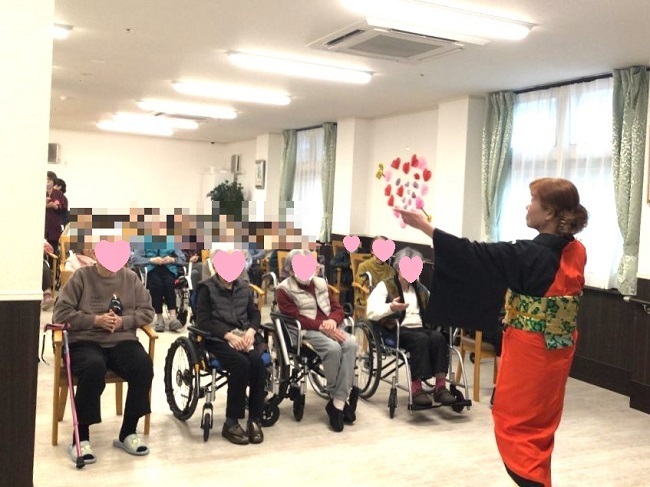 2月9日 ボランティア『五月会』さんが来てくださいました。みんなで歌ったり、マジック・体操・舞踊に三味線と盛りだくさんの内容でした。「待ってました」と合いの手が入り、みなさん楽しまれていました。