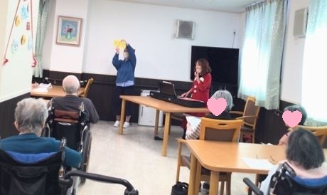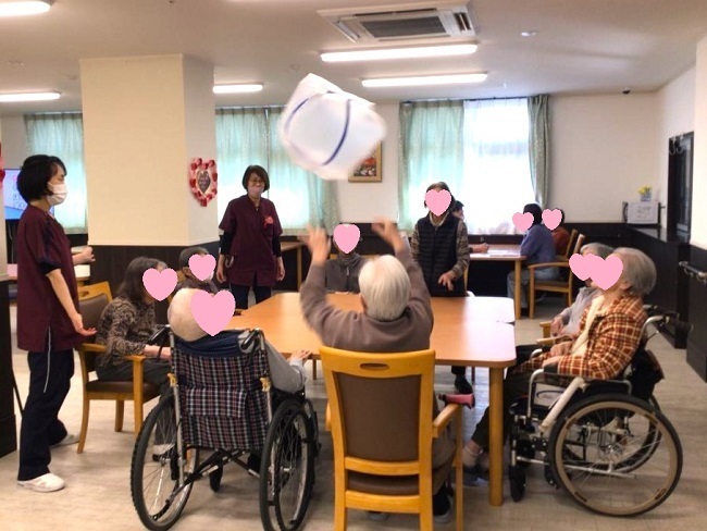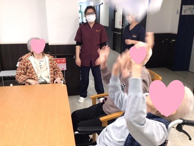 体操レクや、お誕生日のお祝い、カラオケやボール的入れゲームを楽しまれていました。