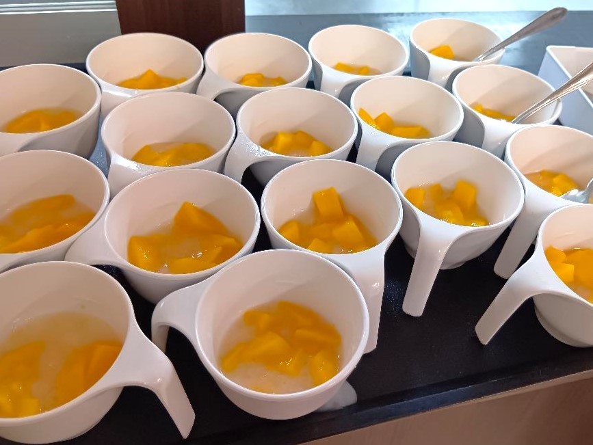 お食事の後のデザートに、手作り『マンゴー牛乳プリン』が振舞われたそうです。皆様ぺろりと召し上がられました。